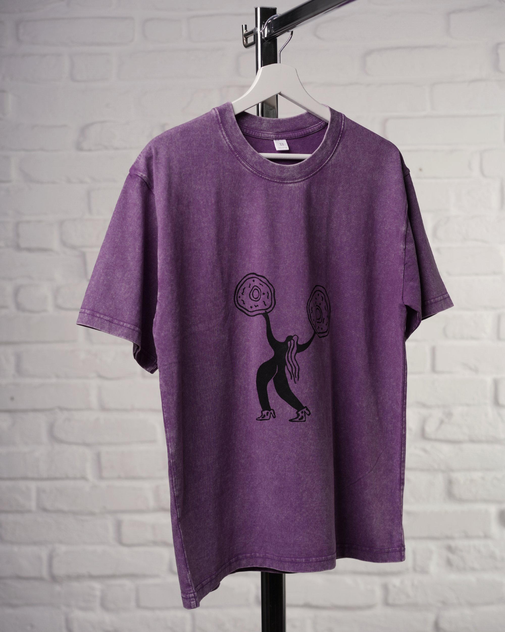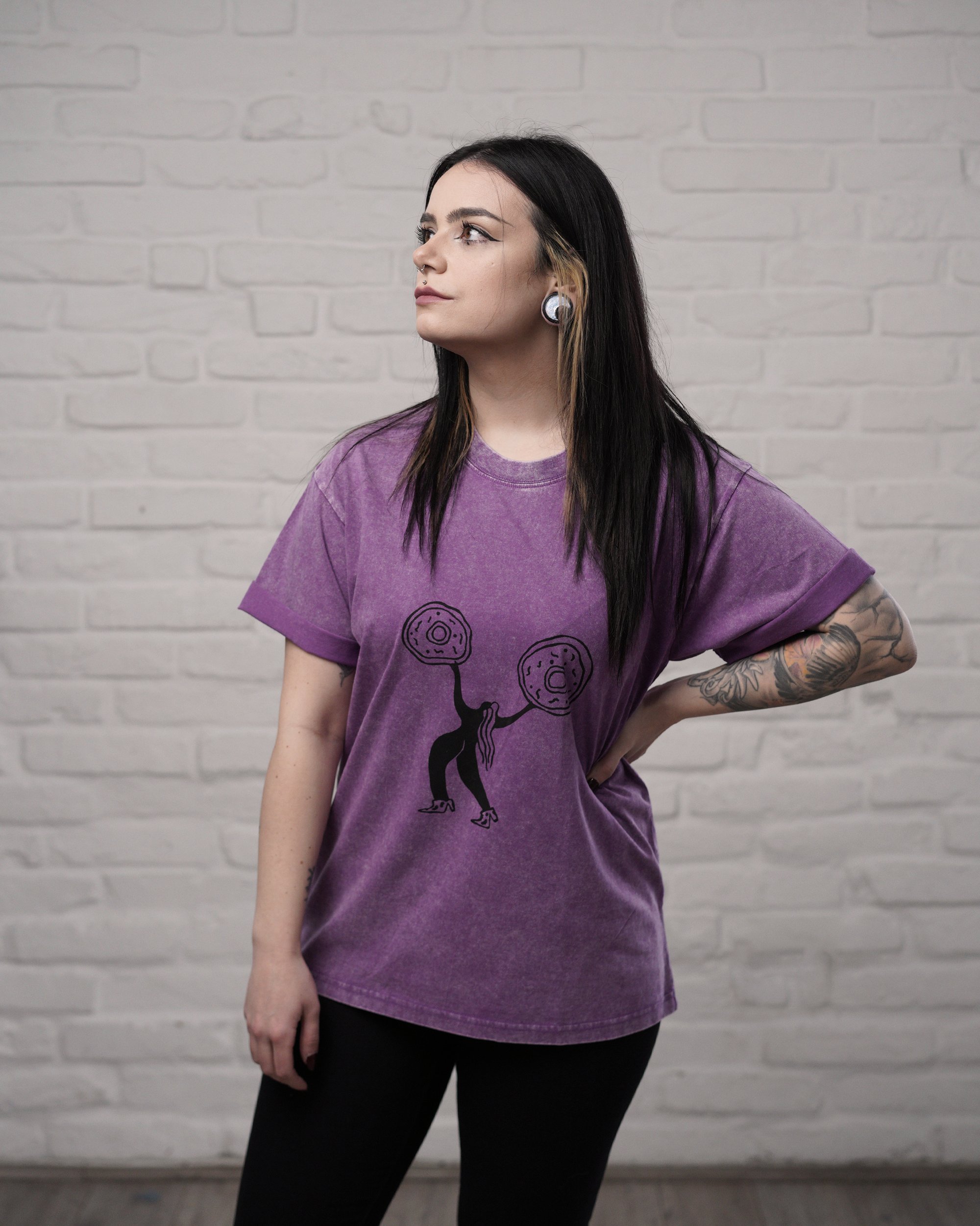 Dancing with my donuts! - Kézzel nyomott póló / Lila - acid washed /