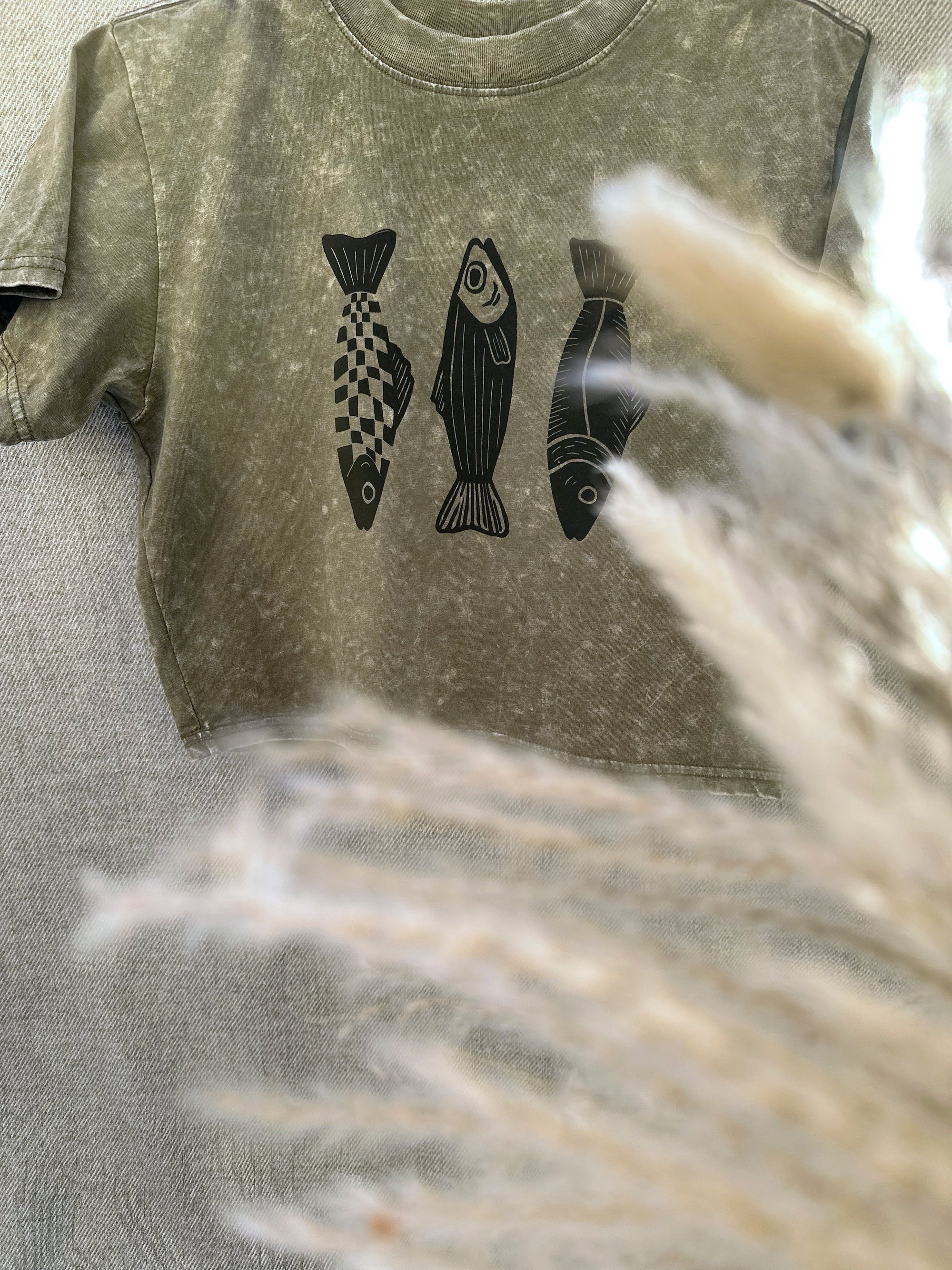 Fish 3 - Kézzel nyomott crop shirt / Handprinted /