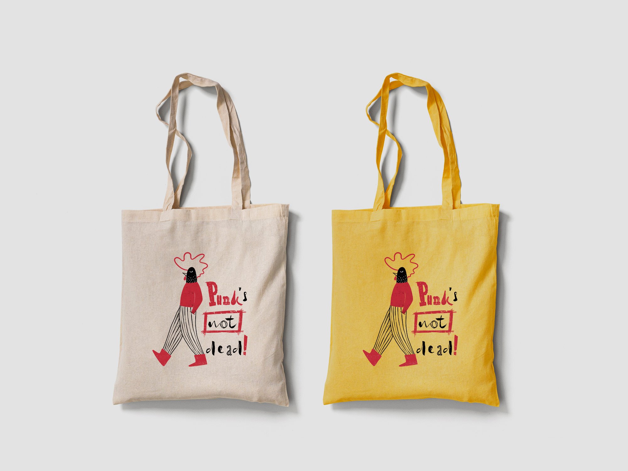 "Punk's not dead!" tote bag - kakas - natúr / sárga