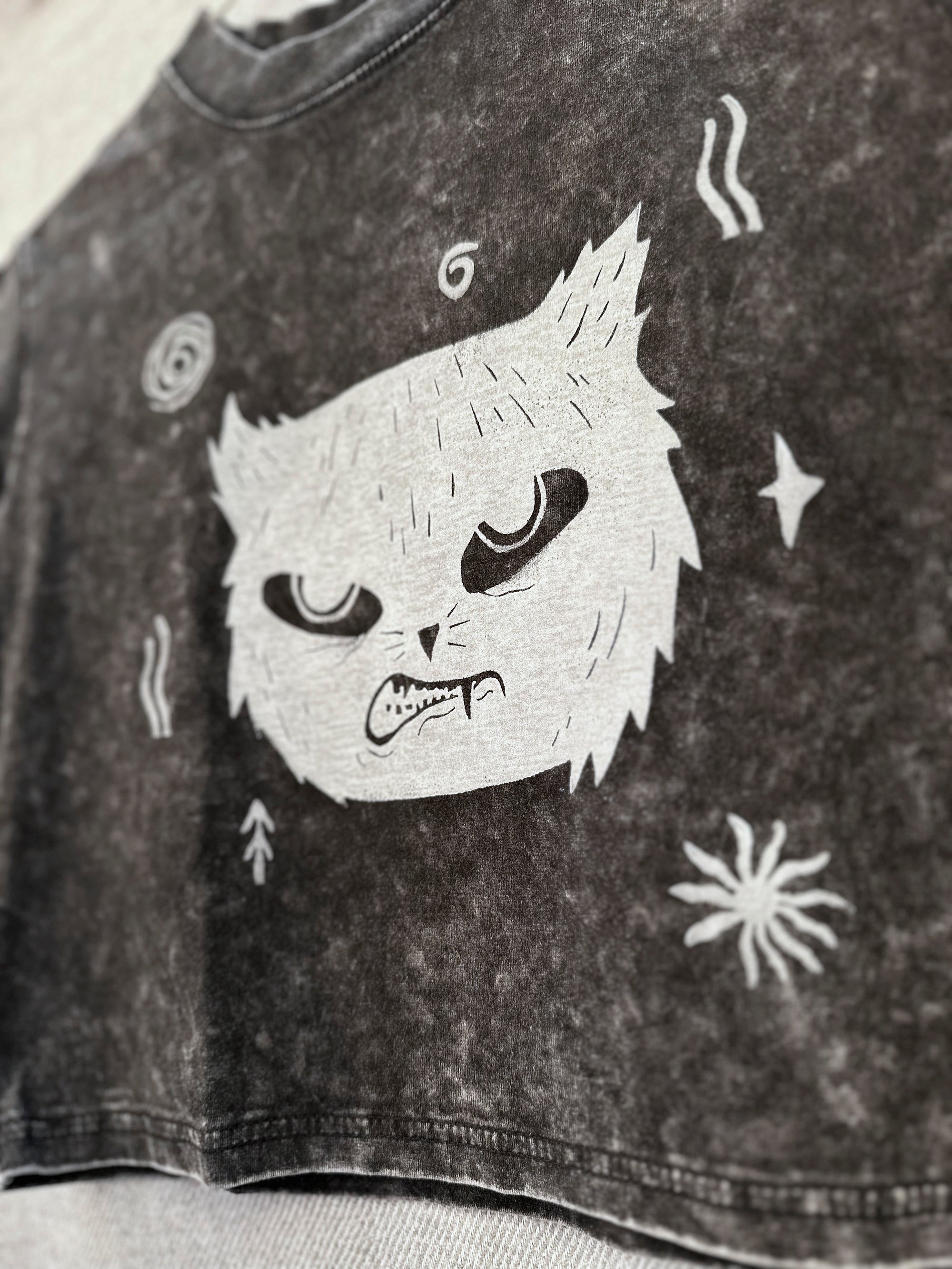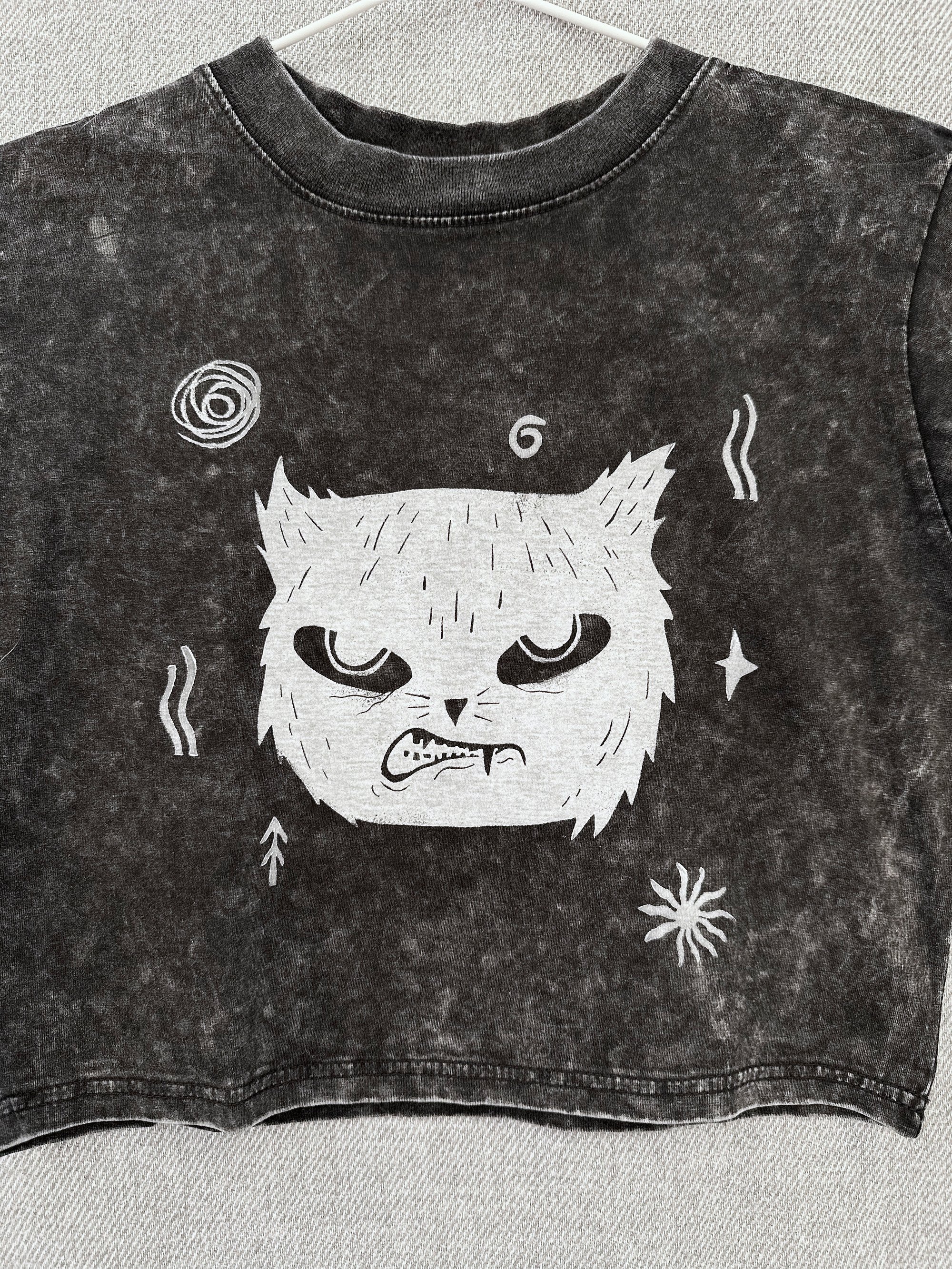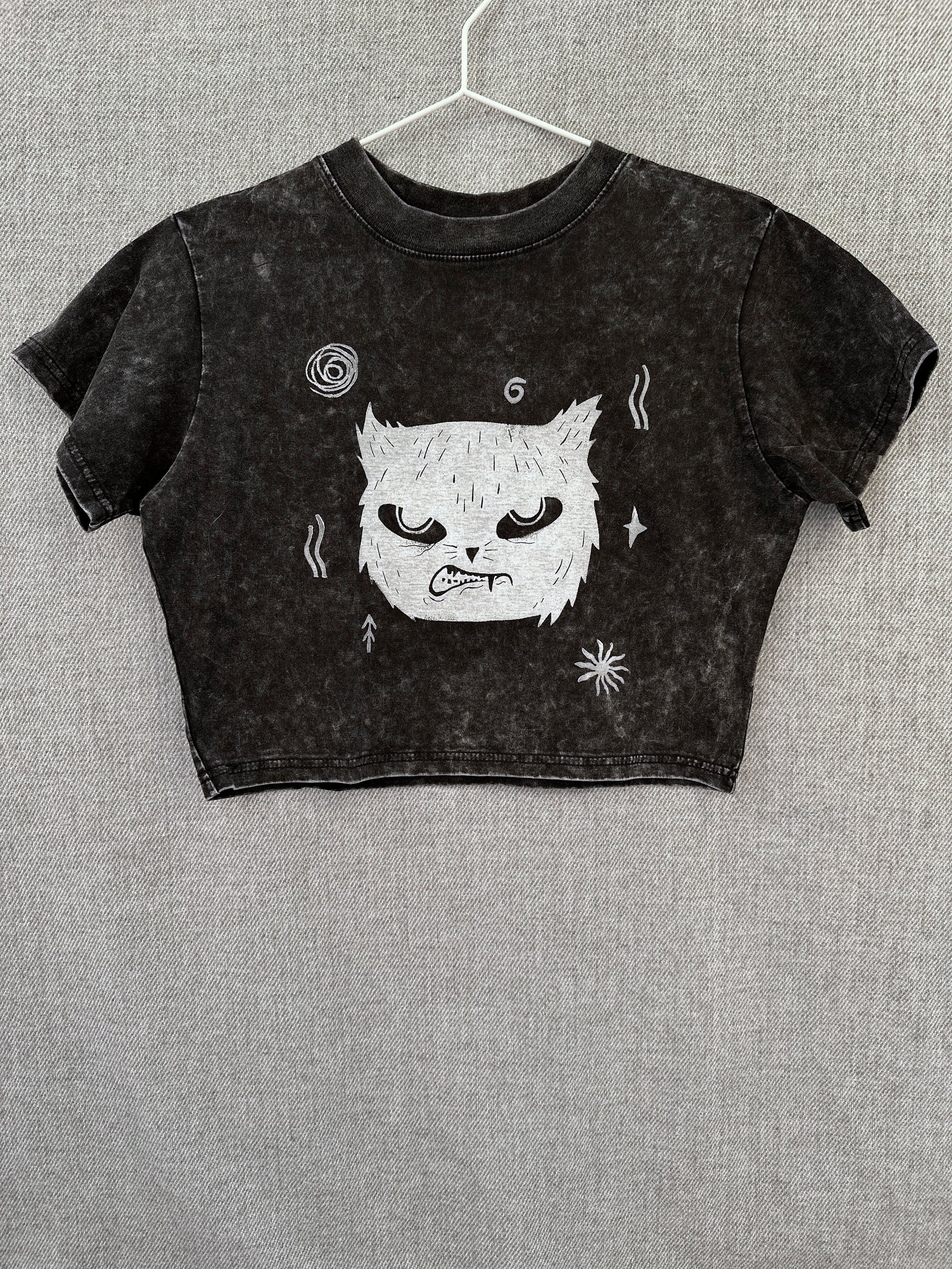 Strange smile - Kézzel nyomott crop shirt / Handprinted /