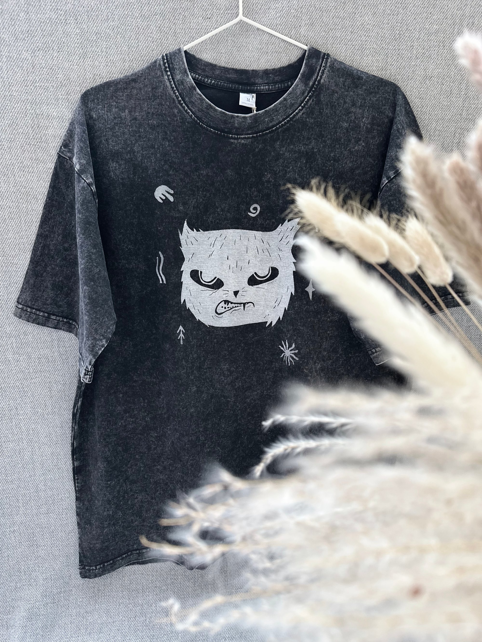 Ahhoz, hogy a minta minél tovább szép maradjon, kérlek, óvatosan mosd a pólót. Az első mosás után előfordulhat enyhe kopás – ez természetes ennél a technikánál, és tovább erősíti a vintage vibe-ot.